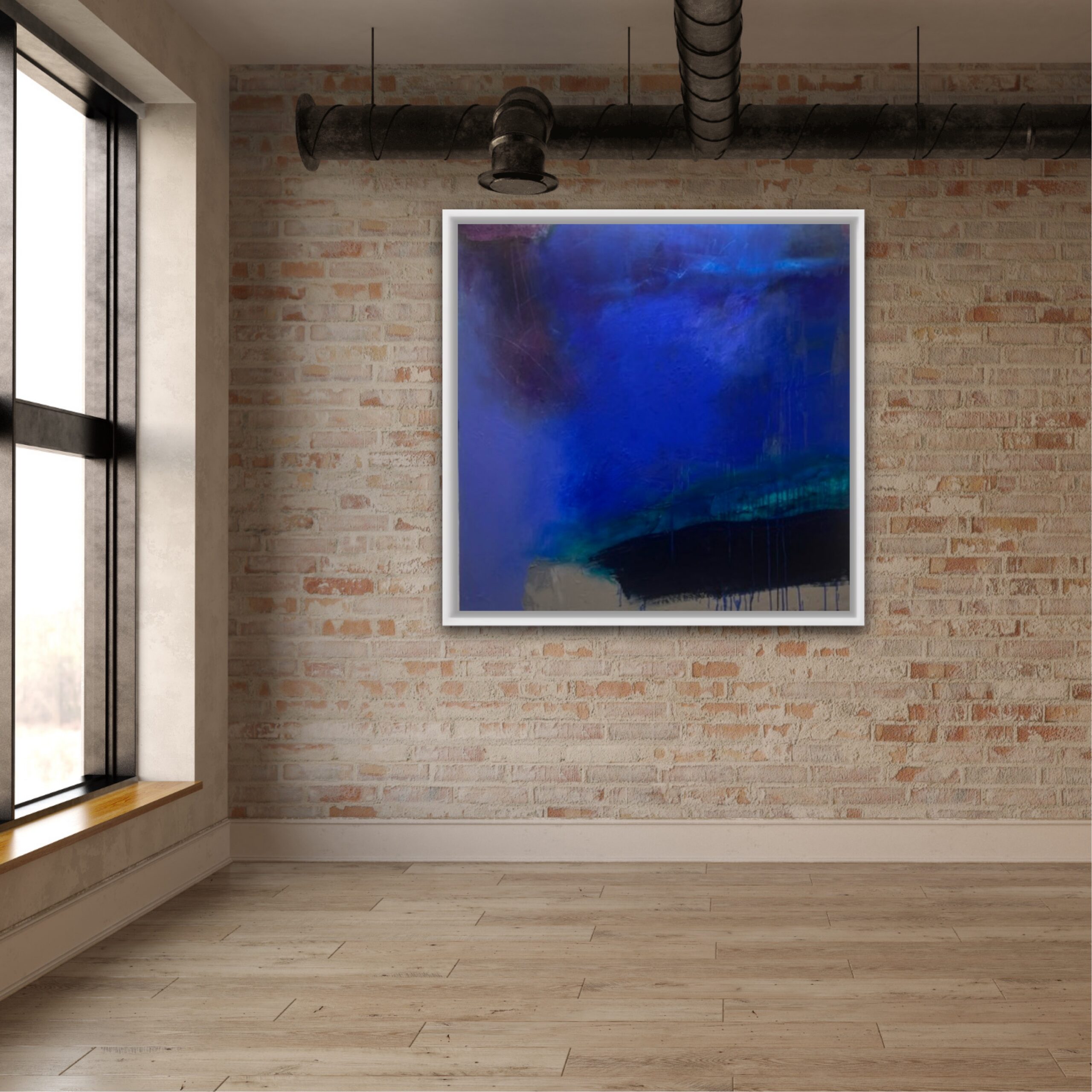 oil and cold wax on board, framed 106 x 106 cms just stunning blues!!!!!!!