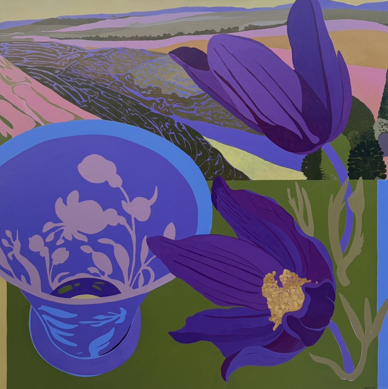 100 cm SQ acrylic on canvas a beautiful large scale painting – part of the artist’s new collection that includes landscape