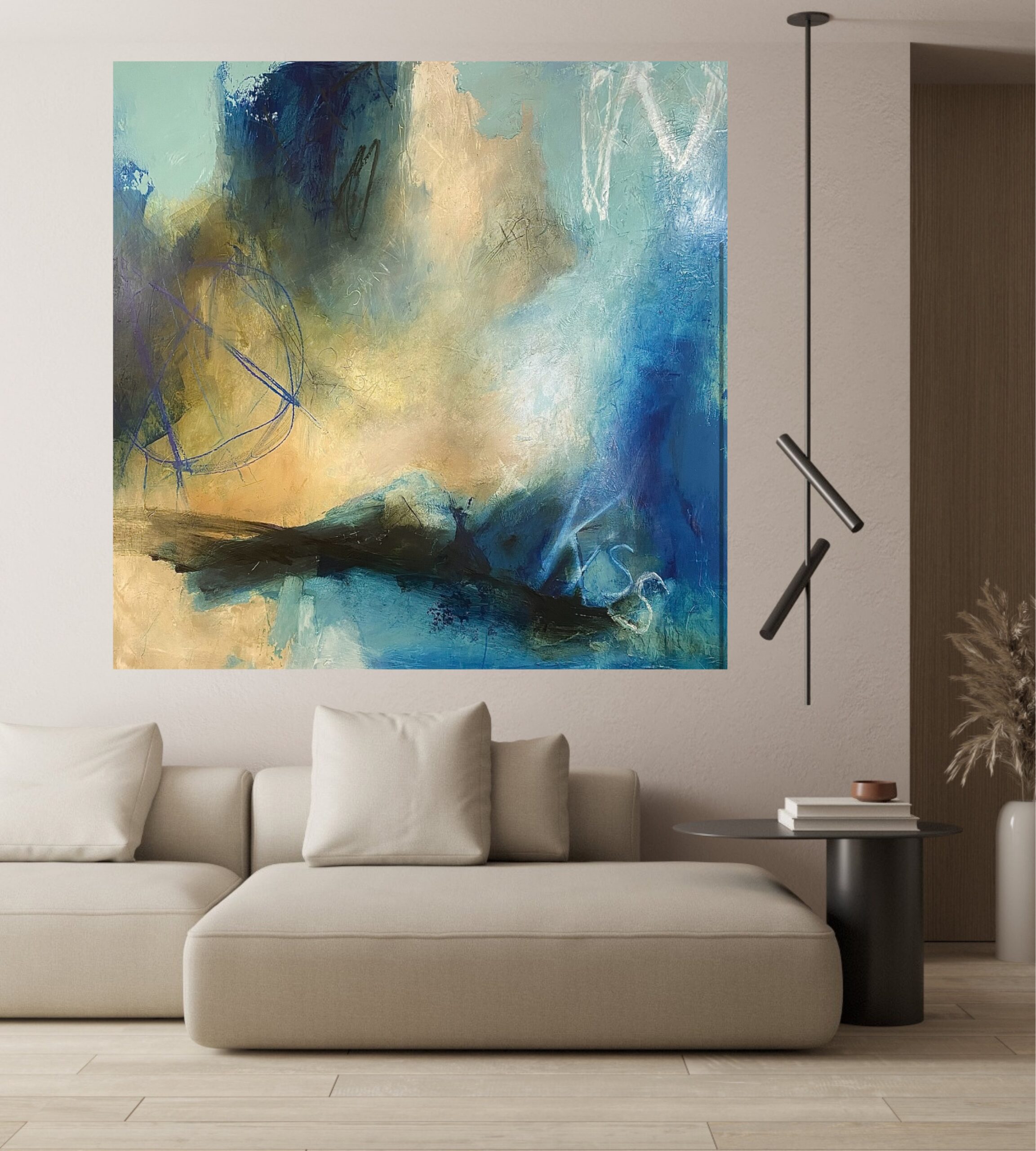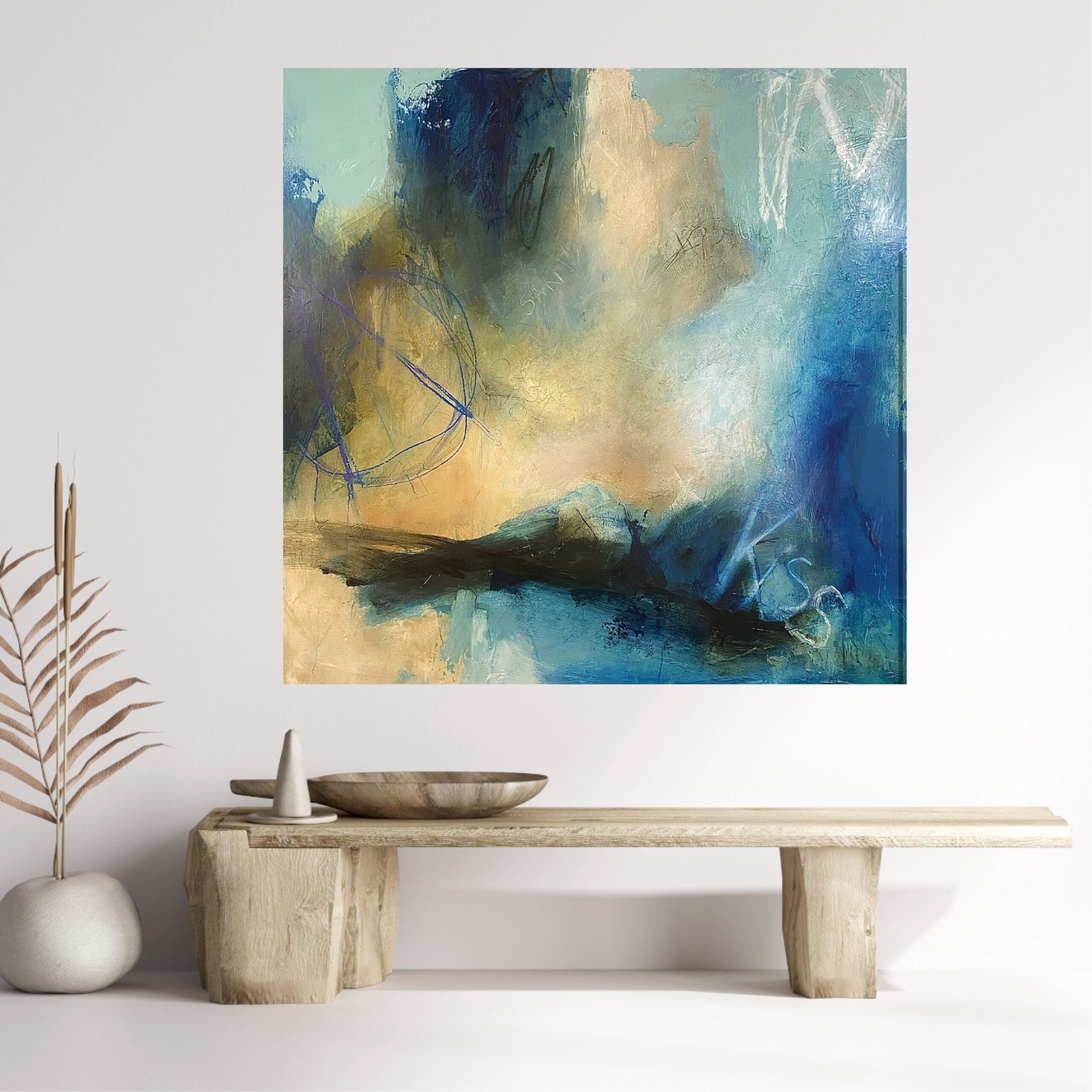 oil and cold wax on board, 120 X 120 cms unframed – ! Check out the mock ups to give you an idea.