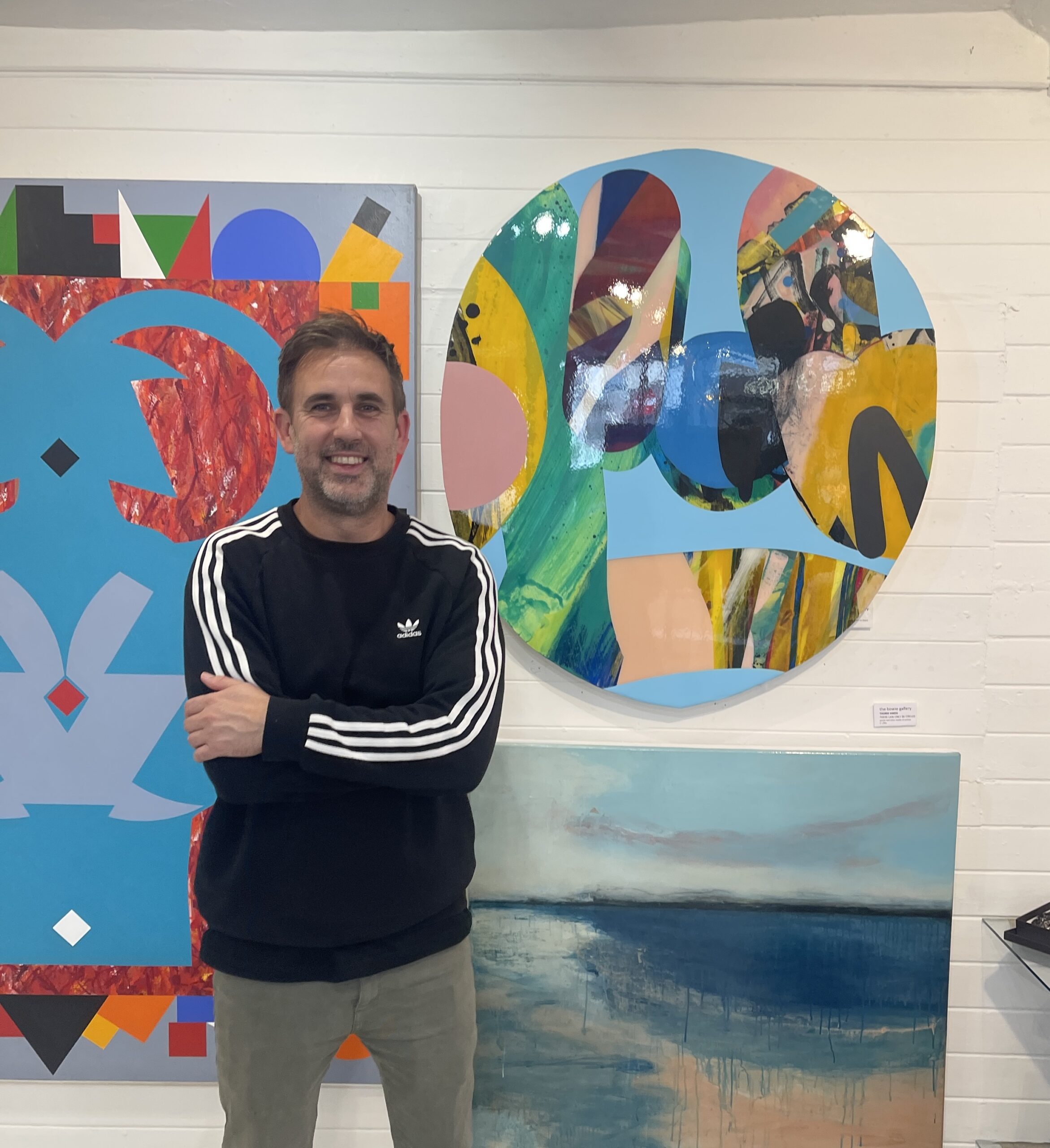 A stunning, beautiful circular abstract painting, acrylic and resin on board 99 X 90 cm SOLD NOW SORRY